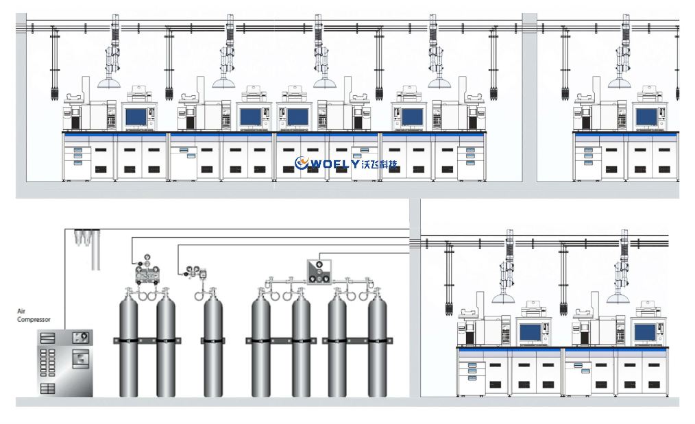 節(jié)省氣瓶租金與分子篩損耗:采用中央供氣系統(tǒng)后,沃飛科技能夠顯著減少對氣瓶數(shù)量的需求,從而節(jié)省氣瓶的租用和購買成本。同時,控制氣體純度可有效減少分子篩的使用量,降低實驗室的運行成本。