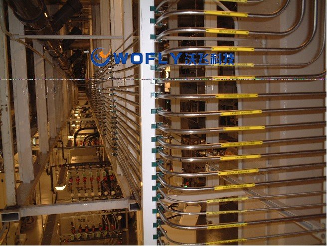 (2)生產廠房內特種氣體管道的干管,應敷設在技術夾層或技術夾道內,當與水電管線共架時,當相對密度小于或等于 0.75 的氣體管道宜設在水、電管線下部;相對密度大于 0.75 的特氣管道宜設在水、電管線上部。
